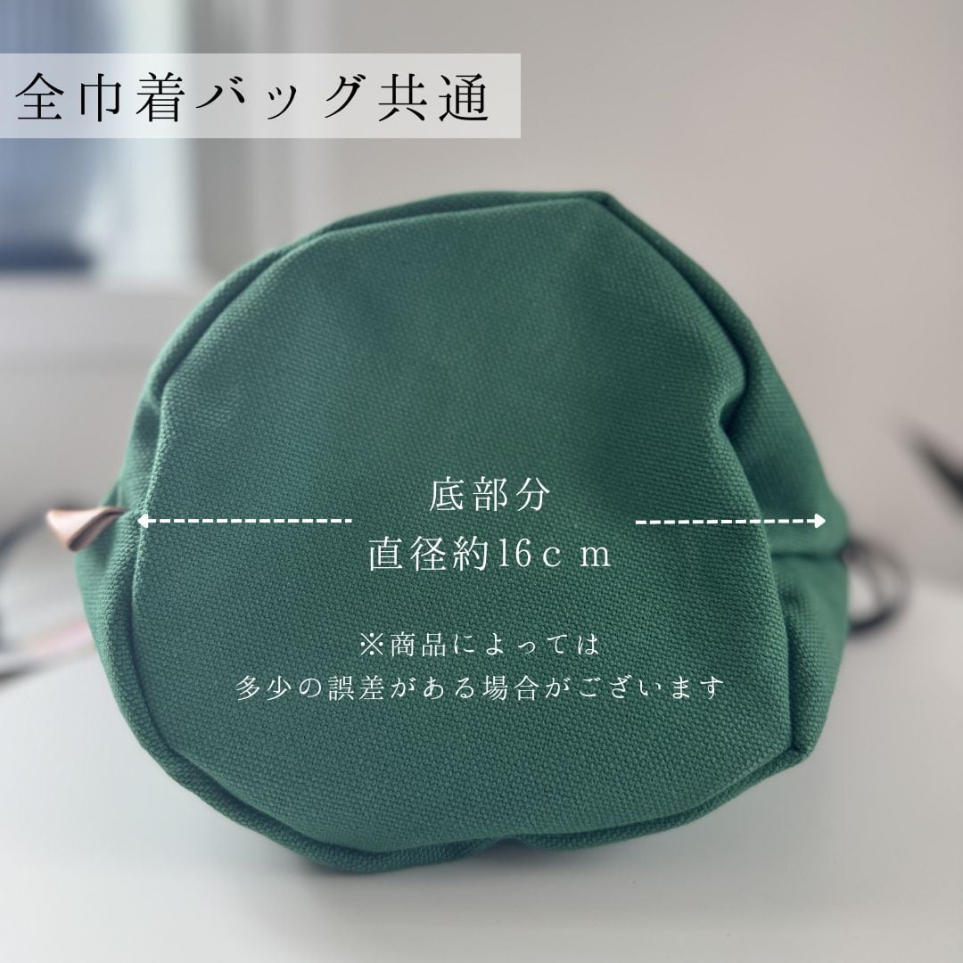 丈夫な帆布素材を使用した、レピヤンリボンがアクセントの巾着バッグです。